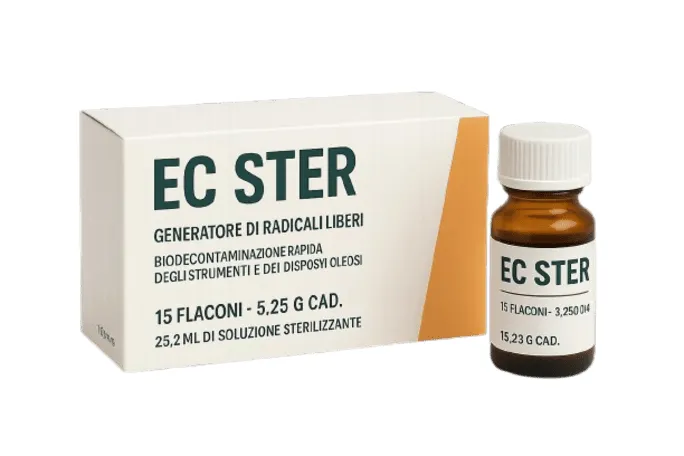 EC STER es un esterilizante en frío con acción detergente. Se presenta en solución en polvo.